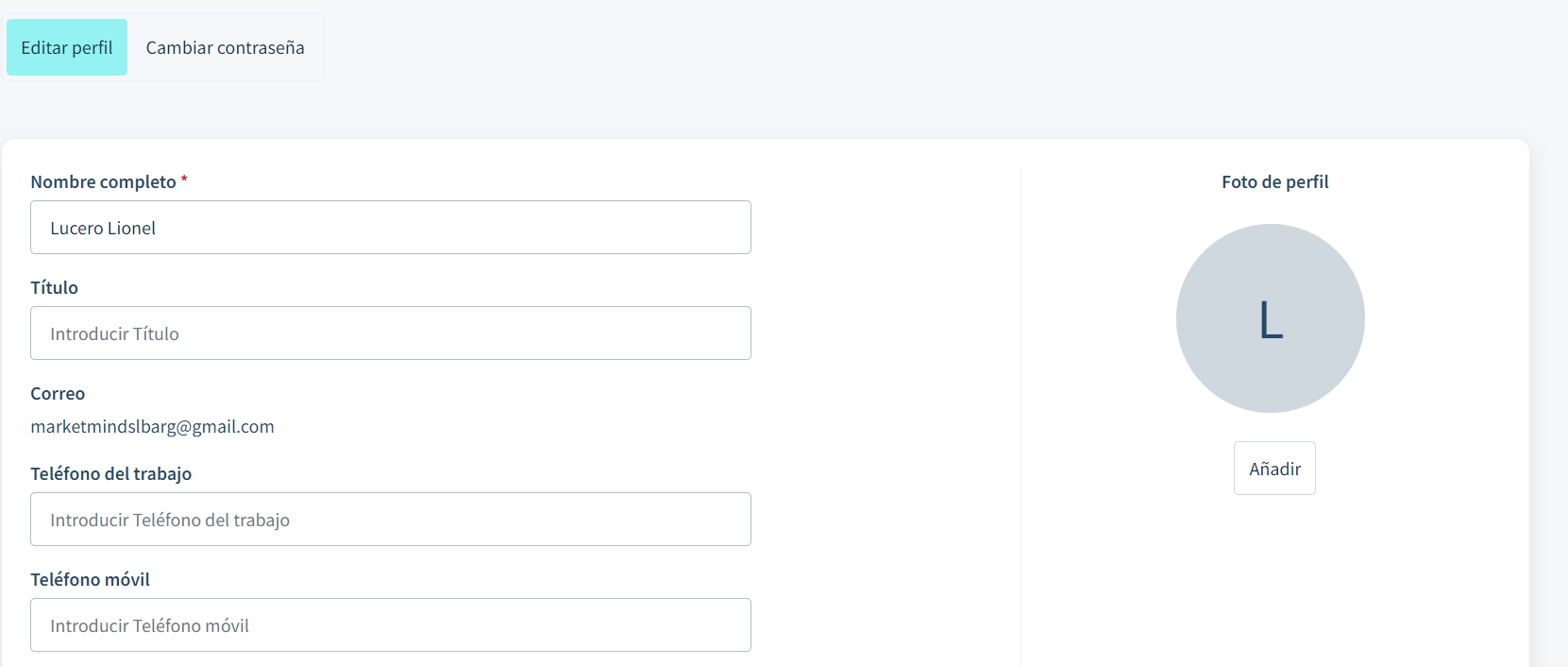 Una vez dentro podrá ingresar o editar los siguientes datos